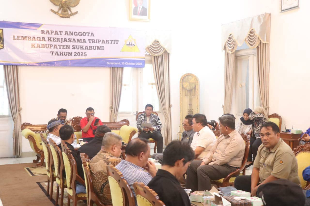 ARAHBICARA.COM – Bupati Sukabumi H. Asep Japar kembali menegaskan komitmennya memperkuat wadah dialog Lembaga Kerja Sama (LKS) Tripartit yang melibatkan unsur pemerintah, pengusaha, dan buruh. Hal ini disampaikannya saat berkumpul bersama pengurus dan anggota tripartit di Pendopo Sukabumi, Kamis (30/10/2025).
