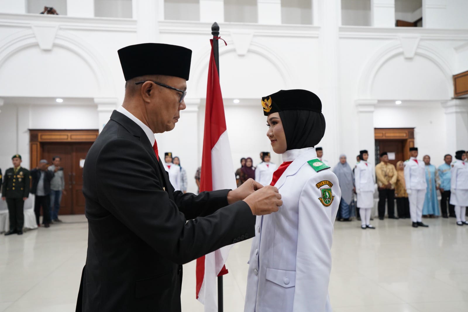 Wali Kota Sukabumi, H. Ayep Zaki, bertindak sebagai pembina upacara. Turut hadir Wakil Wali Kota Bobby Maulana, unsur Forkopimda, Ketua TP-PKK, DWP Kota Sukabumi, para kepala sekolah, Ketua PPI Kota Sukabumi, orang tua Capaska, serta tamu undangan lainnya.