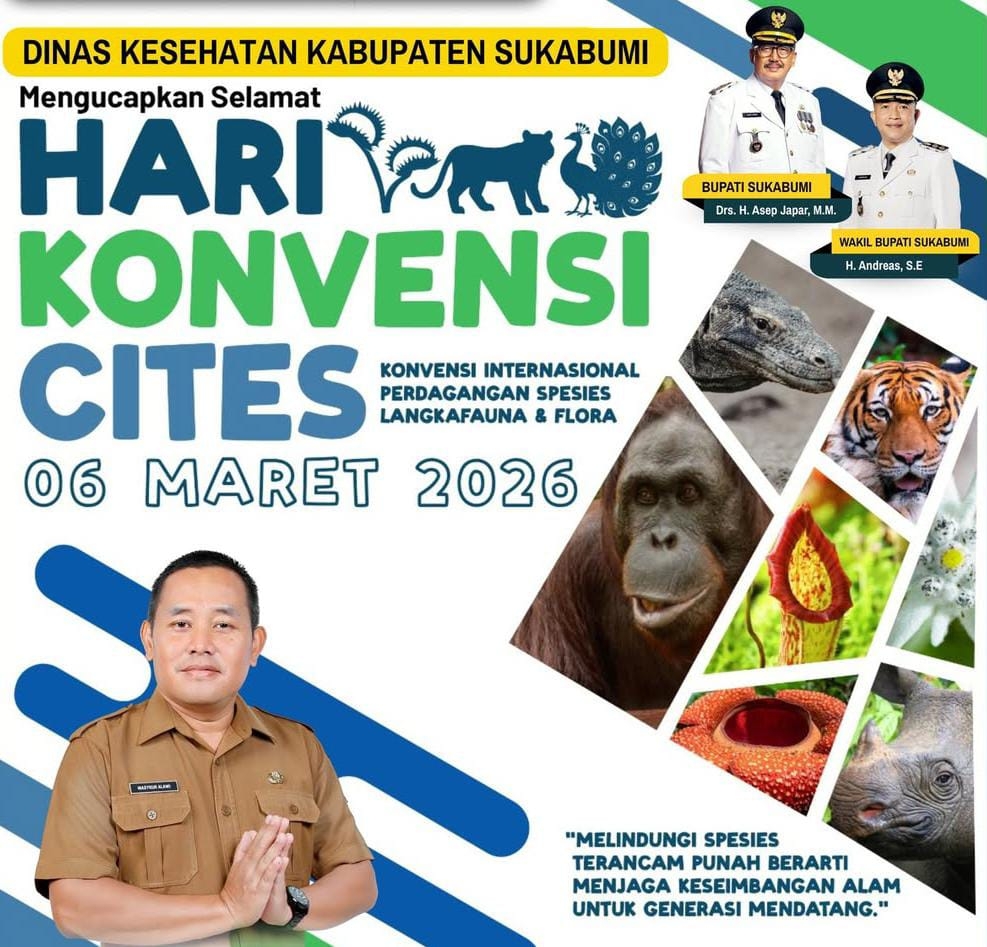 ARAHBICARA.COM – Pemerintah Kabupaten Sukabumi melalui Dinas Kesehatan ikut memperingati Hari Konvensi CITES (Convention on International Trade in Endangered Species of Wild Fauna and Flora) yang jatuh setiap 6 Maret. Momentum ini menjadi pengingat pentingnya menjaga satwa dan tumbuhan yang terancam punah.