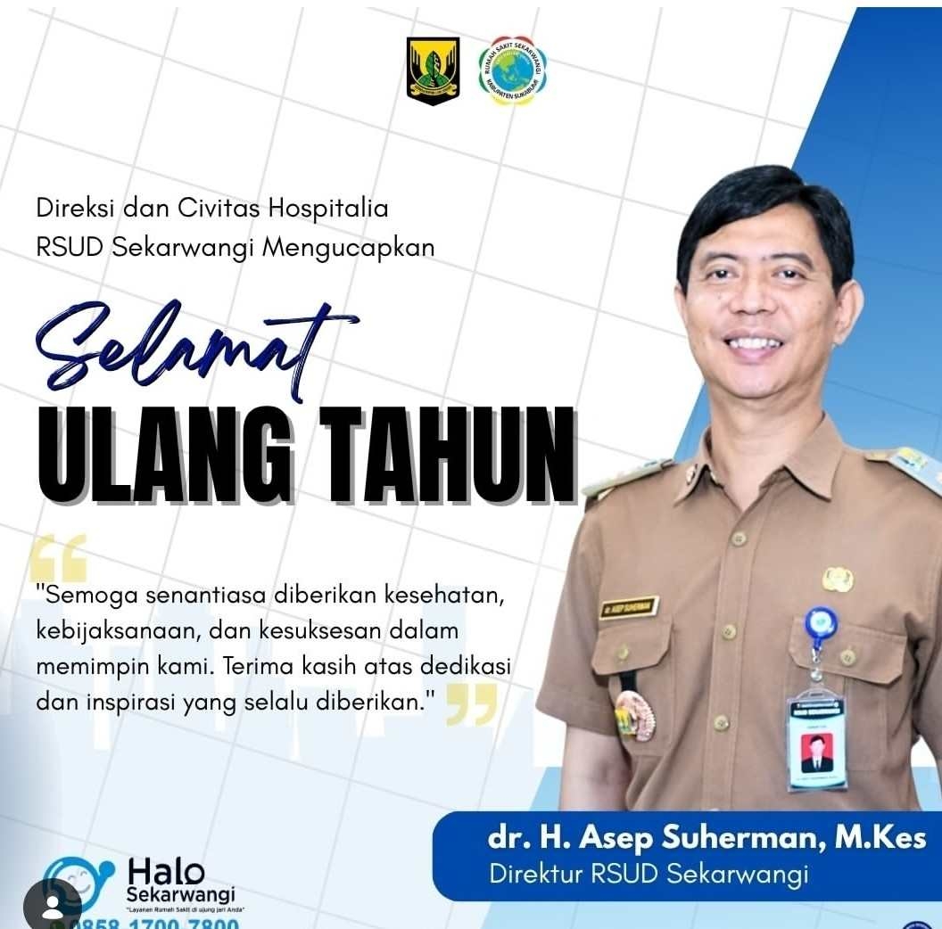 “Semoga senantiasa diberikan kesehatan, kebijaksanaan, dan kesuksesan dalam memimpin kami. Terima kasih atas dedikasi dan inspirasi yang selalu diberikan,” tulis Civitas Hospitalia RSUD Sekarwangi.