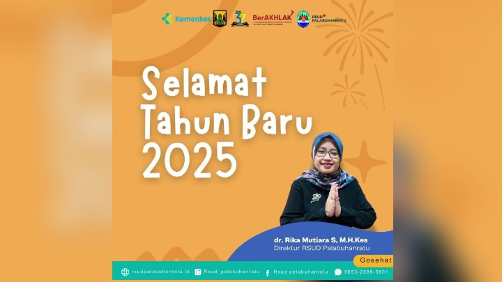 “Saya, dr.Rika Mutiara Sukanda, Direktur RSUD Palabuhanratu mengucapkan Selamat Tahun Baru 2025. Semoga di tahun 2025 kita semua dapat terus bersemangat dalam melakukan perubahan dan perbaikan, khususnya dalam penyelenggaraan pemerintahan daerah Kabupaten Sukabumi,” ungkapnya , Rabu 1(/12/2025).