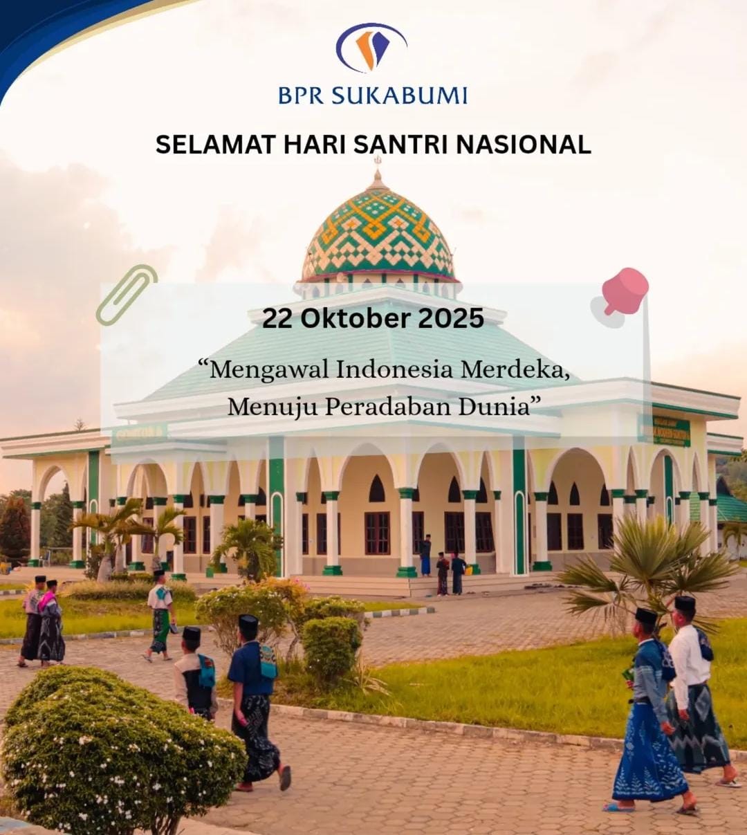 ARAHBICARA.COM – Memperingati Hari Santri Nasional 2025 yang jatuh pada 22 Oktober 2025, Perumda BPR Sukabumi menyampaikan apresiasi dan penghormatan tinggi kepada seluruh santri di Indonesia, khususnya di wilayah Sukabumi, yang telah menjadi bagian penting dalam menjaga nilai-nilai keislaman, keilmuan, dan kebangsaan.