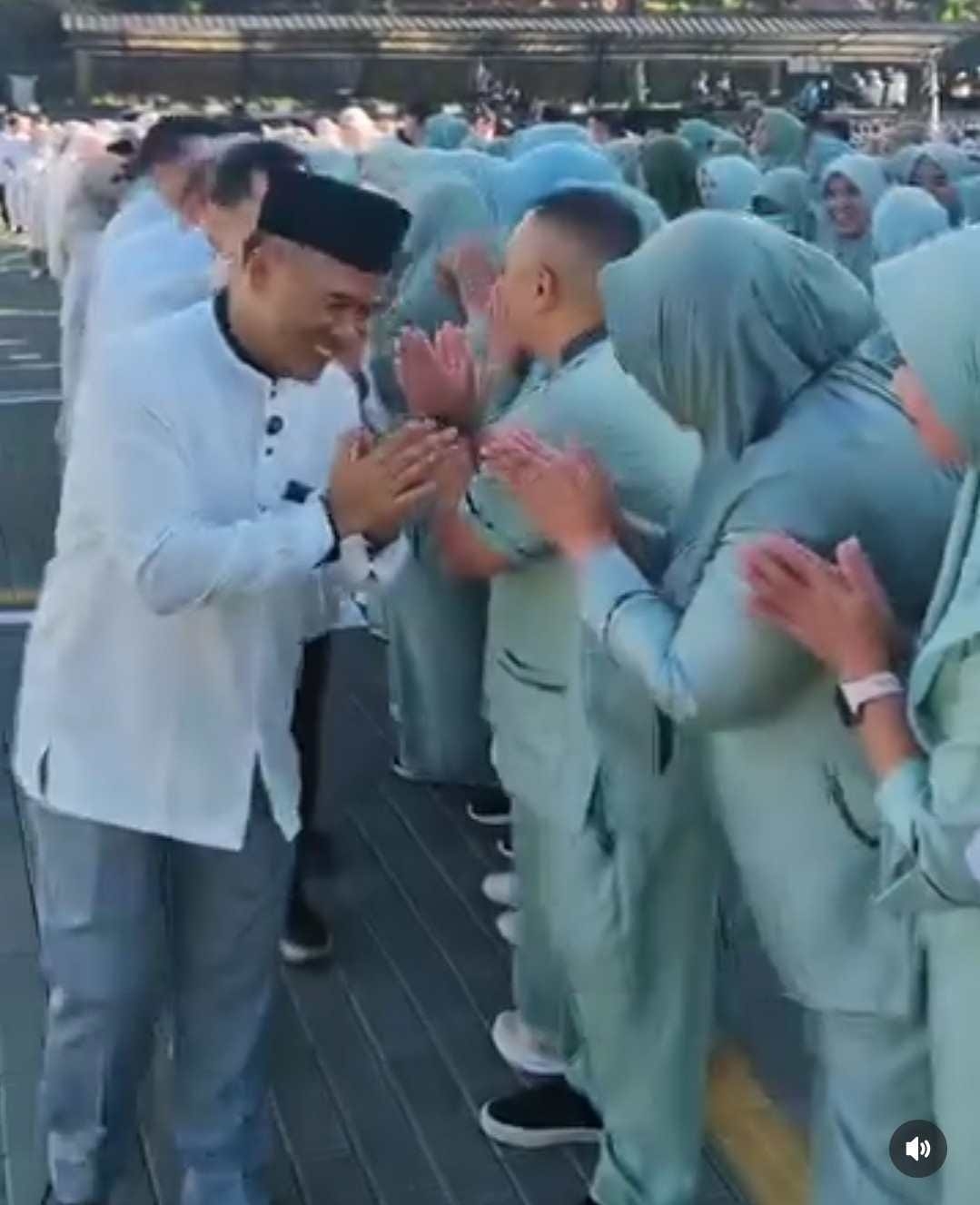 Suasana acara berlangsung hangat. Para peserta saling bersalaman dan bermaafan sebagai wujud mempererat hubungan setelah Ramadan.