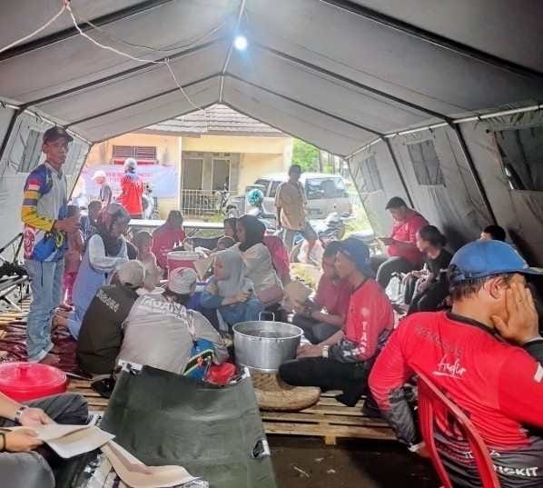“Setiap hari kami menyiapkan sekitar 600 porsi untuk buka puasa dan 600 porsi untuk sahur melalui dapur umum lapangan. Makanan ini diperuntukkan bagi penyintas di dua desa terdampak serta relawan yang bertugas di lokasi,” ujar Iwan, Rabu (10/3/2026).