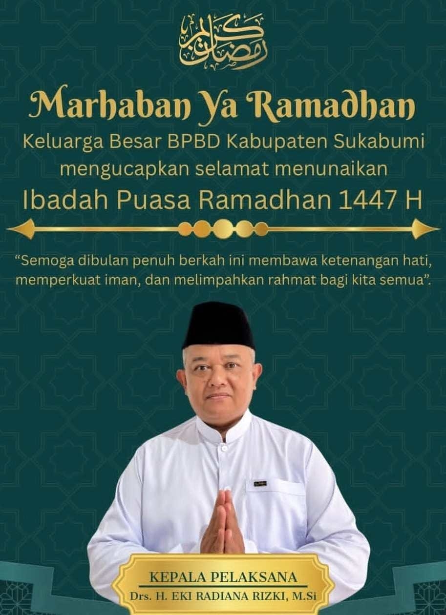 BPBD berharap seluruh amal ibadah di bulan suci ini diterima Allah SWT dan membawa keberkahan bagi kemajuan Kabupaten Sukabumi.