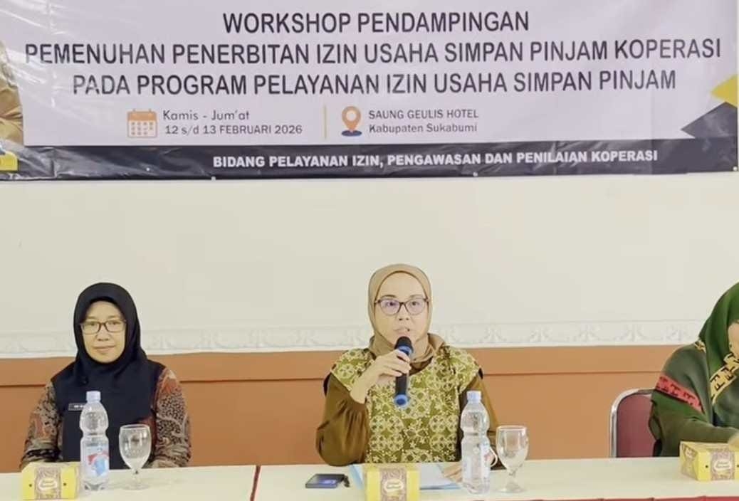ARAHBICARA.COM – Dinas Koperasi Usaha Kecil dan Menengah (DKUKM) Kabupaten Sukabumi menggelar Workshop Pendampingan Pemenuhan Penerbitan Izin Usaha Simpan Pinjam (USP) selama dua hari, Kamis–Jumat (12-13/2/2026), di Saung Geulis Hotel. Kegiatan ini dibuka langsung oleh Kepala DKUKM Kabupaten Sukabumi, Sri Hastuty Harahap.