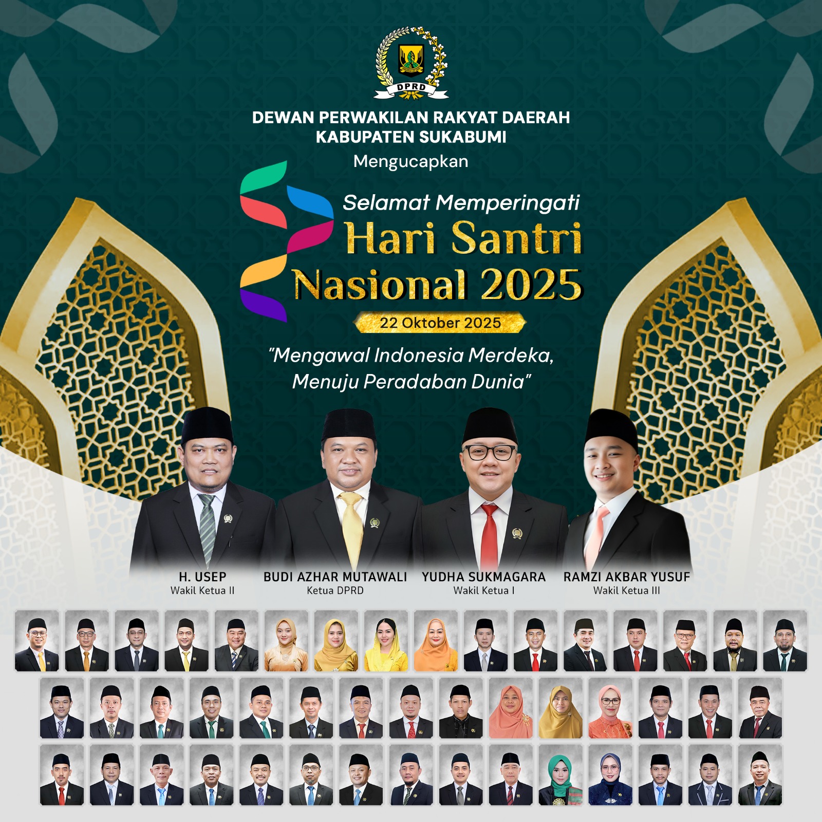 “Selamat Hari Santri Nasional 2025. Mari kita jaga semangat perjuangan para ulama dan santri dalam mengawal Indonesia menuju peradaban dunia,” pungkasnya.