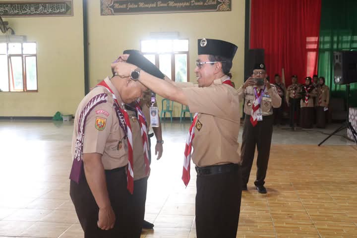 Sementara itu Ketua Kwarcab Sukabumi menyematkan Tanda Peserta KPD secara simbolis oleh dua orang Peserta.