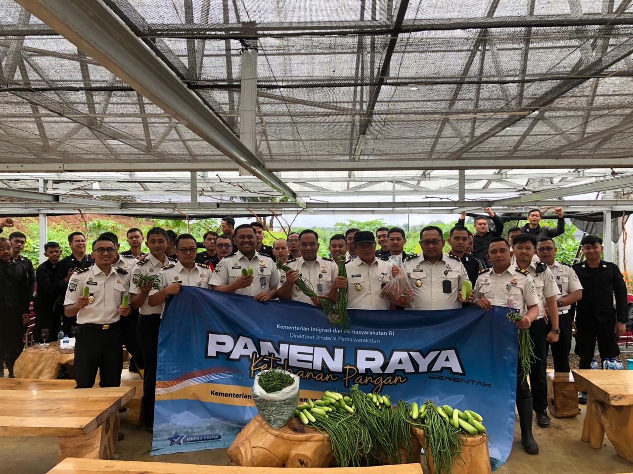 ARAHBICARA.COM – Lembaga Pemasyarakatan (Lapas) Kelas IIA Warungkiara melaksanakan Panen Raya Ketahanan Pangan Serentak pada Kamis (15/1/2026), di Green House Lahan Sarana Asimilasi dan Edukasi Lapas Kelas IIA Warungkiara.