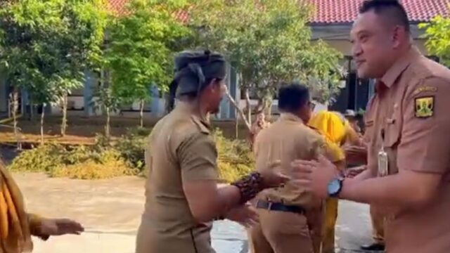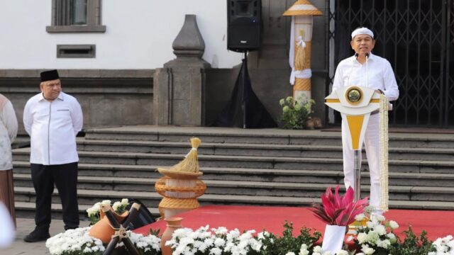 ARAHBICARA.COM - Suasana hangat terasa di halaman Gedung Sate, Bandung, Senin (30/3/2026). Para...