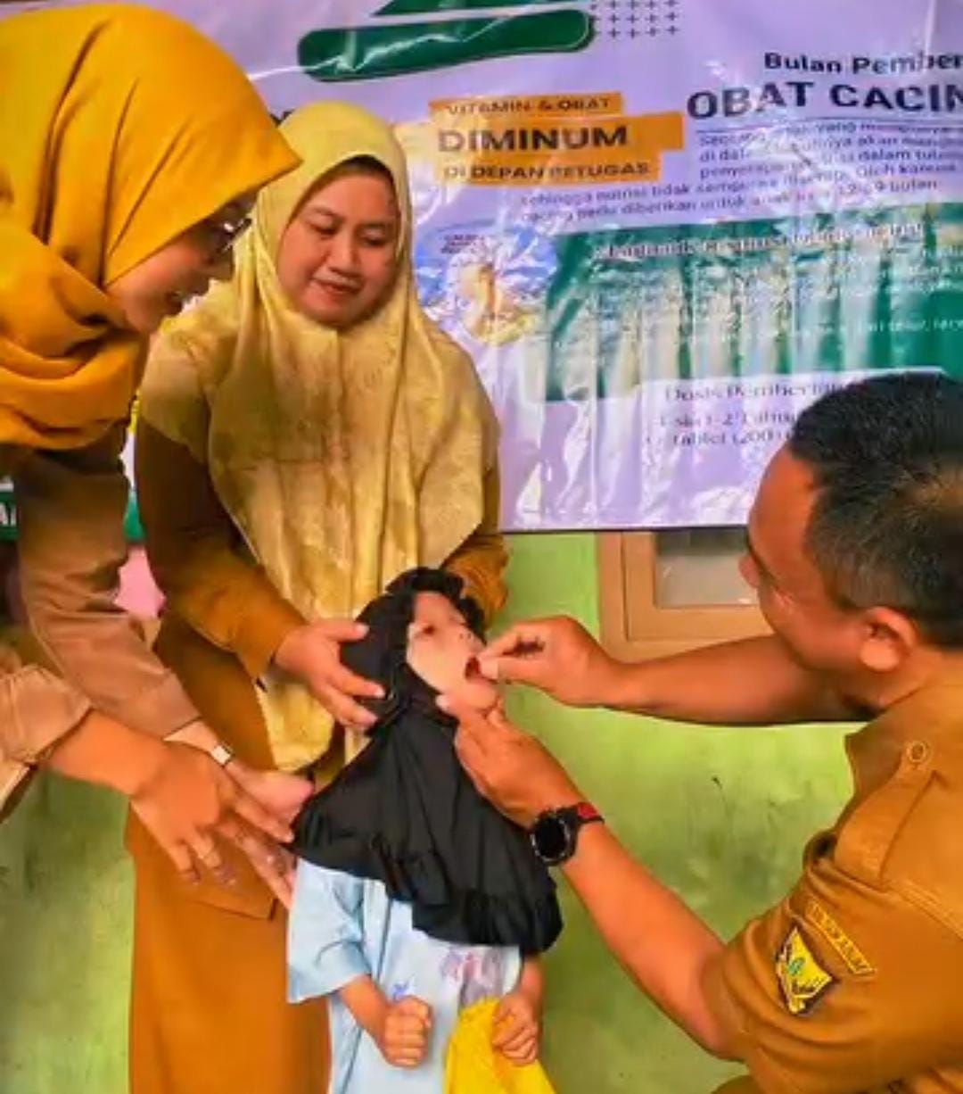 Selain itu, anak usia 12 bulan hingga 12 tahun juga diberikan obat cacing sesuai dosis yang ditentukan petugas kesehatan. “Obat cacing diminum langsung di depan petugas untuk memastikan anak benar-benar mengonsumsinya. Ini penting agar manfaatnya maksimal dan mencegah stunting akibat kurangnya penyerapan gizi,” tambahnya.