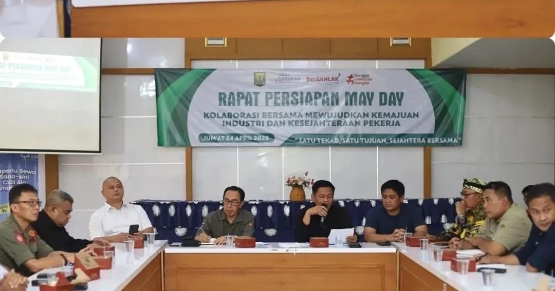 ARAHBICARA.COM — Sekretaris Daerah Kabupaten Sukabumi, Ade Suryaman, memimpin rapat koordinasi (rakor) persiapan pelaksanaan peringatan Hari Buruh Internasional atau May Day Tahun 2026. Kegiatan tersebut digelar di Aula Kantor Disnakertrans Kabupaten Sukabumi, Jumat (24/04/2026).