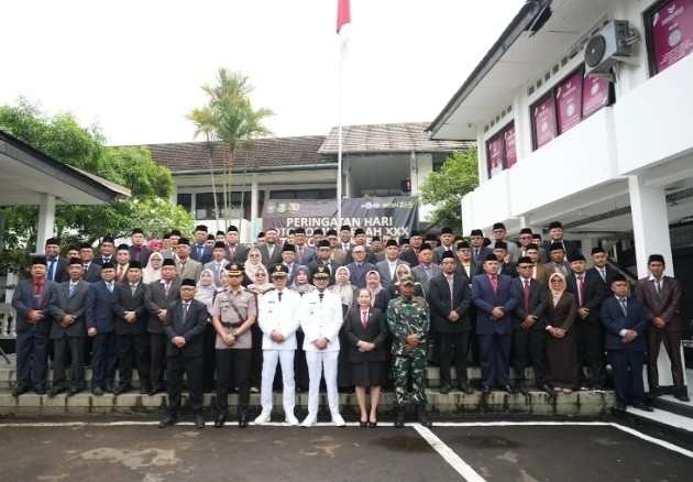 Upacara dipimpin Wali Kota Sukabumi Ayep Zaki dan dihadiri Wakil Wali Kota, Sekretaris Daerah Andang Tjahjandi, serta jajaran pejabat daerah. Sekda bersama Kepala Bappeda Mohamad Hasan Asari ikut mendampingi wali kota.