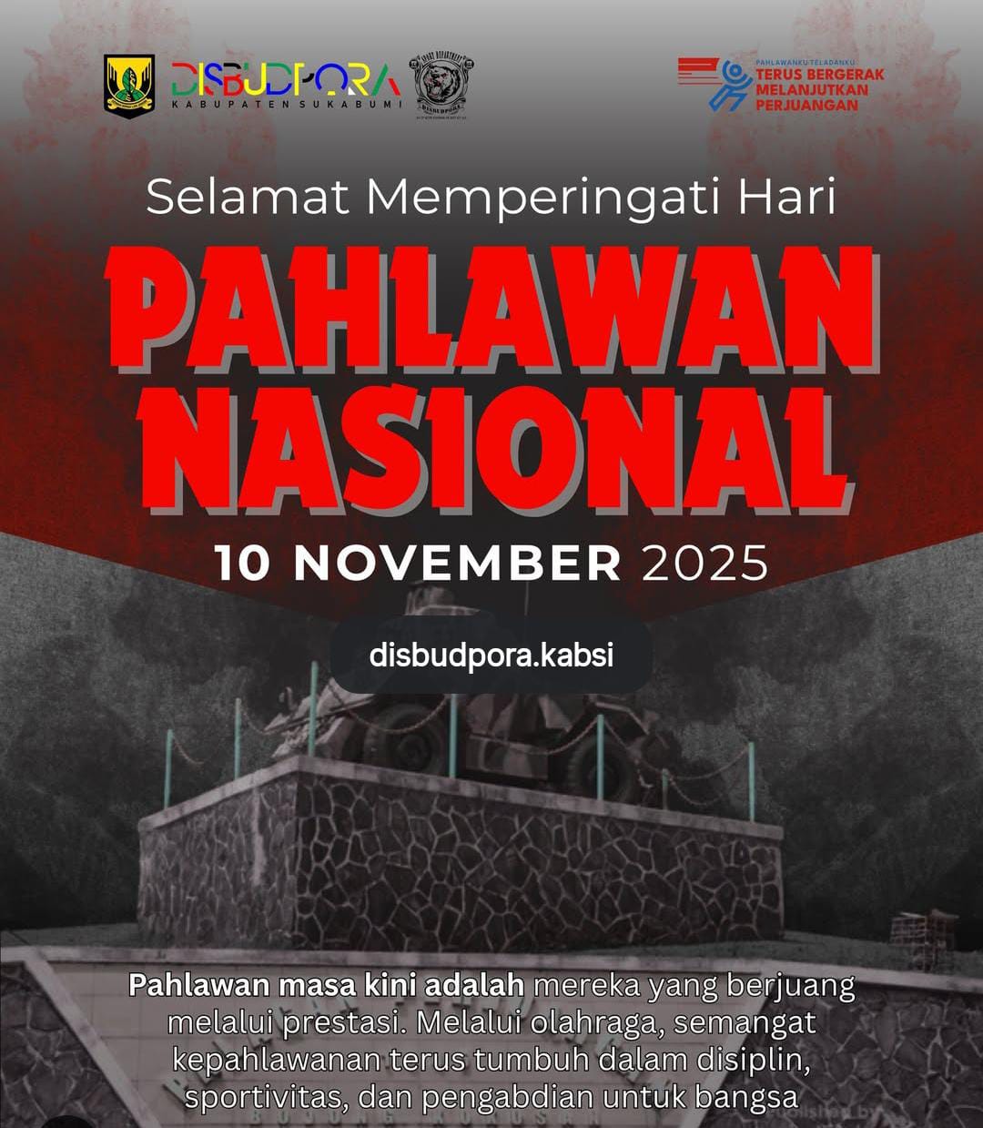ARAHBICARA.COM – Dalam momentum peringatan Hari Pahlawan Nasional 10 November 2025, Dinas Kebudayaan, Kepemudaan, dan Olahraga (Disbudpora) Kabupaten Sukabumi menyerukan semangat perjuangan dan pengabdian kepada generasi muda melalui bidang olahraga, seni, dan kebudayaan.