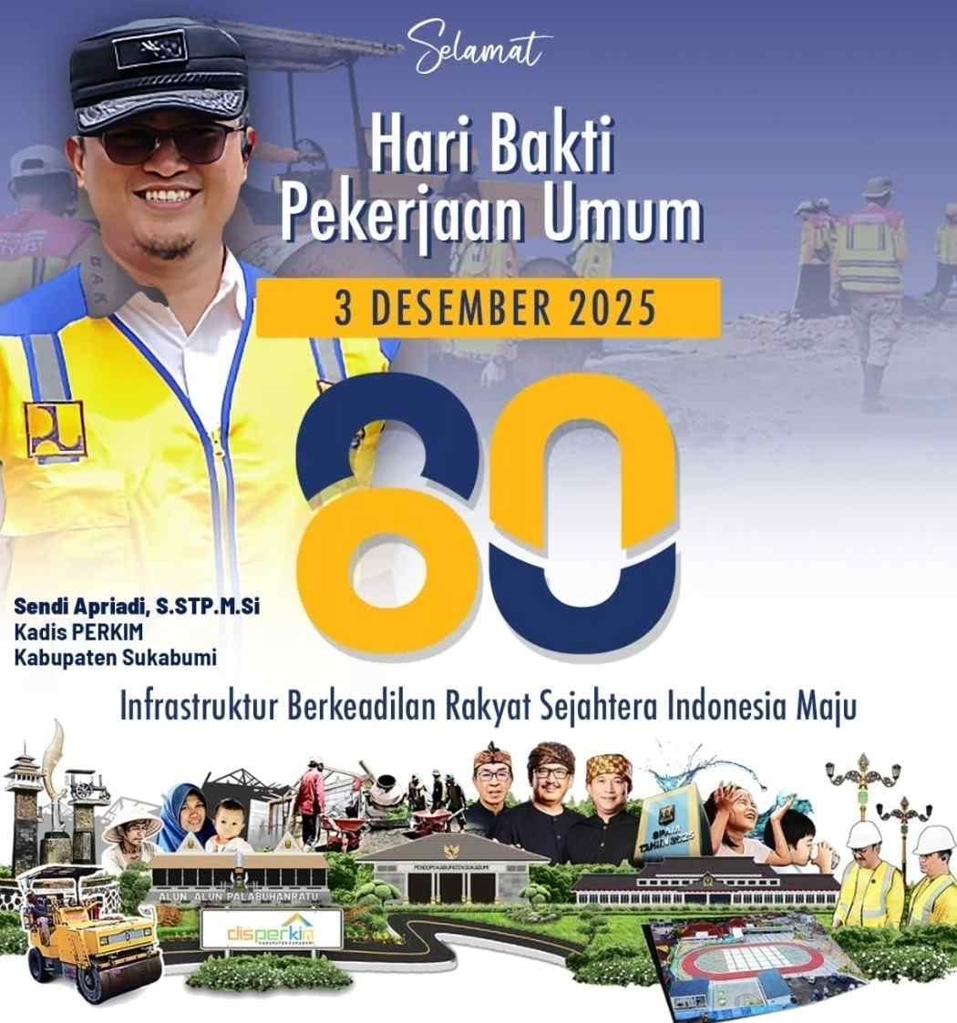 ARAHBICARA.COM – Kepala Dinas Perumahan dan Kawasan Permukiman (Disperkim) Kabupaten Sukabumi, Sendi Apriadi, menyampaikan ucapan selamat Hari Bakti Pekerjaan Umum (PU) ke-80 yang diperingati setiap 3 Desember.
