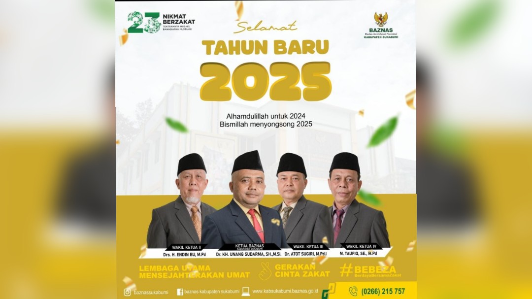 ARAHBICARA.COM – Badan Amal Zakat Nasional (Baznas) Kabupaten Sukabumi melalui Wakil Ketua IV, M.Taufiq menyampaikan ucapan Selamat Tahun Baru 2025.