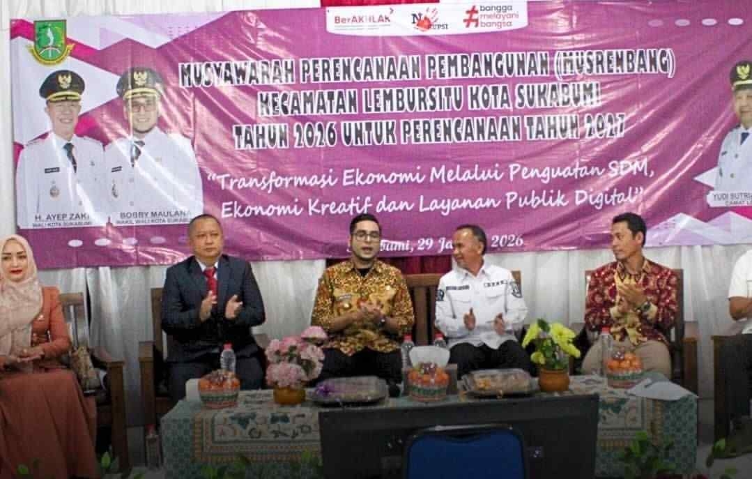 ARAHBICARA.COM – Wakil Wali Kota Sukabumi Boby Maulana bersama jajaran Bappeda menghadiri Musyawarah Perencanaan Pembangunan (Musrenbang) Kecamatan Lembursitu, Kamis (29/1/2026). Kegiatan ini menjadi bagian dari penyusunan Rencana Kerja Pemerintah Daerah (RKPD) Tahun 2027.