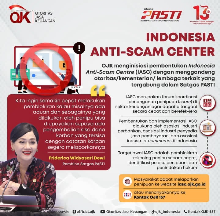 Namun, OJK juga mengingatkan masyarakat agar waspada terhadap situs palsu yang mengatasnamakan IASC. Laporan hanya bisa dilakukan melalui situs resmi, bukan dari pihak yang mengaku sebagai perwakilan IASC.
